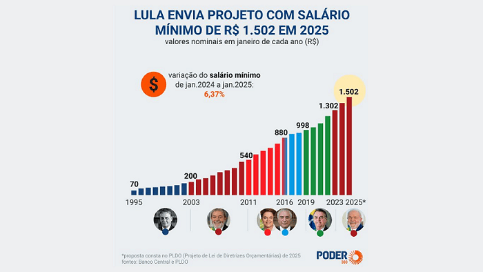 O novo valor do salário mínimo foi calculado com base em regra definida no PLDO (projeto da Lei de Diretrizes Orçamentárias) 3/24.